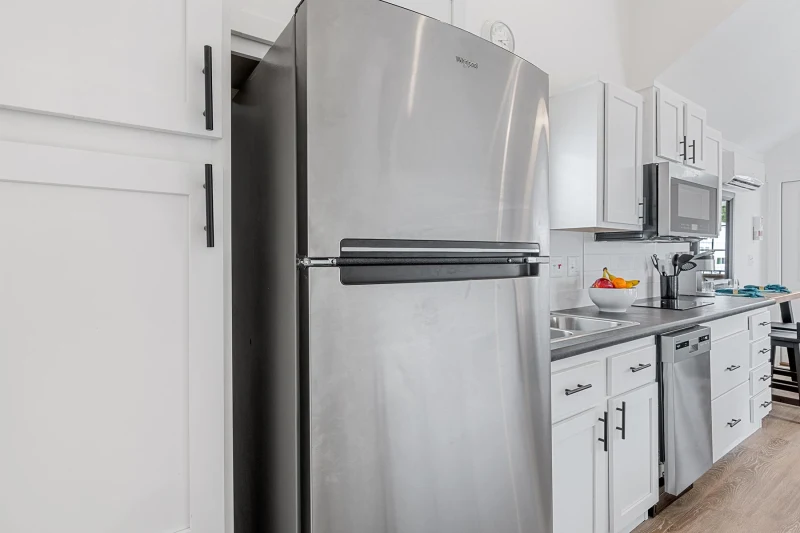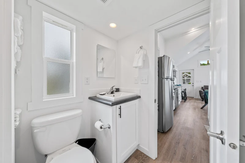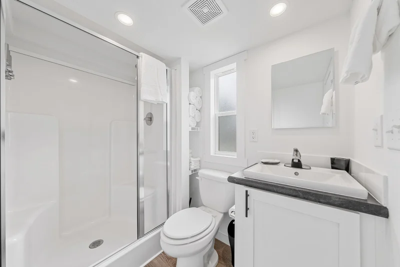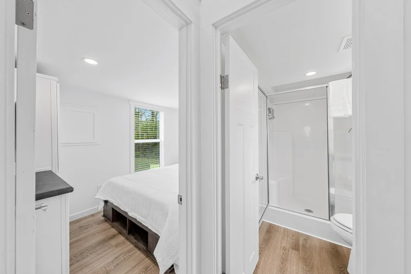 The Champion Park Model 4110L offers a perfect blend of comfort and style in a compact design, making it an ideal option for those looking for a cozy yet functional home. This 399 square foot park model features a spacious open floor plan with a beautifully appointed kitchen, equipped with modern appliances and ample storage. The living area is designed for relaxation, and the well-lit bedroom provides a comfortable retreat. A full bathroom and thoughtful utility spaces enhance convenience, while the stylish exterior adds to its appeal. Ideal for both temporary or long-term living, the 4110L combines practicality with modern amenities.
