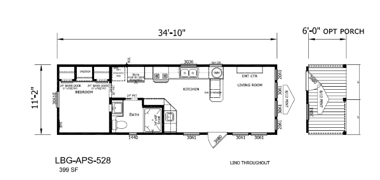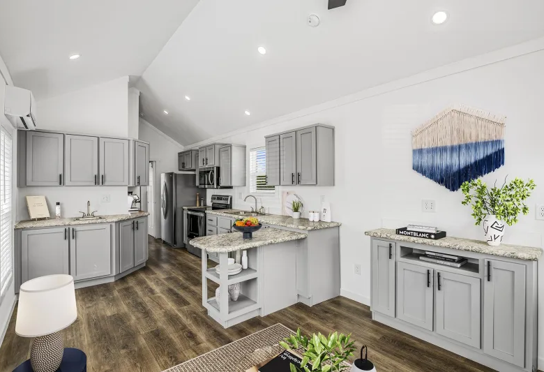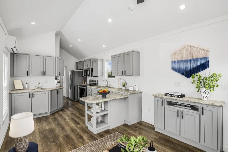 The Champion Park Model 528-070 offers a perfect blend of comfort and style in a compact design. Featuring a charming front porch, this park model home boasts an efficient open floor plan with a spacious living area, a well-equipped kitchen, and a cozy dining space. The home includes a private bedroom with built-in storage and a modern bathroom. Ideal for weekend getaways or full-time living, the 528-070 provides all the essentials for a relaxed lifestyle in a thoughtfully designed layout. With its stylish exterior and quality craftsmanship, this home is an excellent choice for those seeking both functionality and aesthetic appeal.