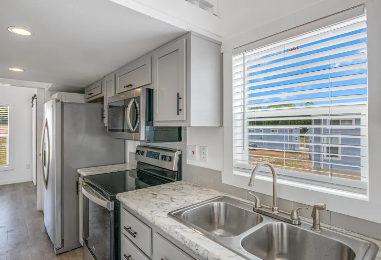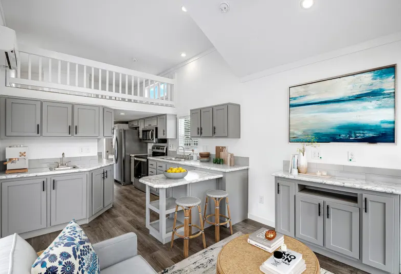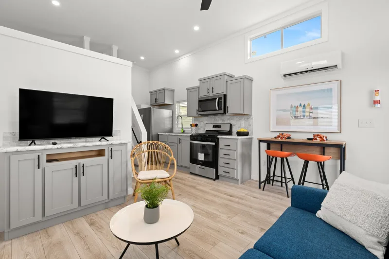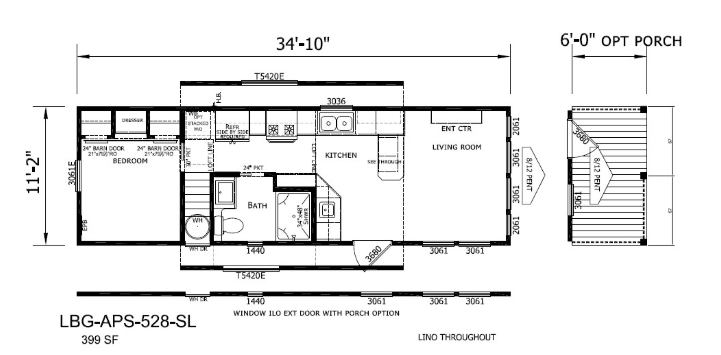 The Champion Park Model 528L offers a cozy and functional living space, perfect for those seeking a charming, compact home. This 399 sq. ft. model features an inviting open floor plan with a spacious living area that seamlessly connects to a well-appointed kitchen, complete with modern appliances and ample cabinetry. The home includes a cozy bedroom, a full bath, and a beautiful front porch, perfect for enjoying the outdoors. With its thoughtfully designed layout and stylish finishes, the Park Model 528L is ideal for seasonal living, weekend getaways, or even as a guest house.