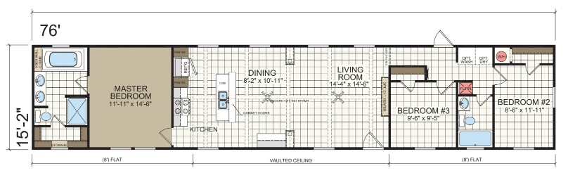 The Dutch 1676-07 by Champion Homes is a spacious and stylish single-family home designed for modern living. With a generous 1,152 square feet of well-planned space, this home features three bedrooms and two bathrooms, making it ideal for families seeking comfort and convenience. The open-concept layout seamlessly connects the living, dining, and kitchen areas, creating an inviting space perfect for entertaining and daily activities.