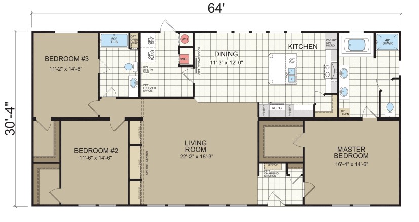 The Riverside 3264-02 is a spacious and stylish manufactured home designed for modern living.