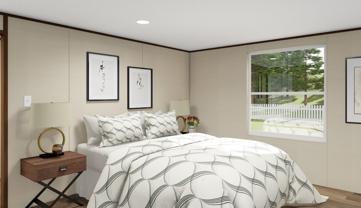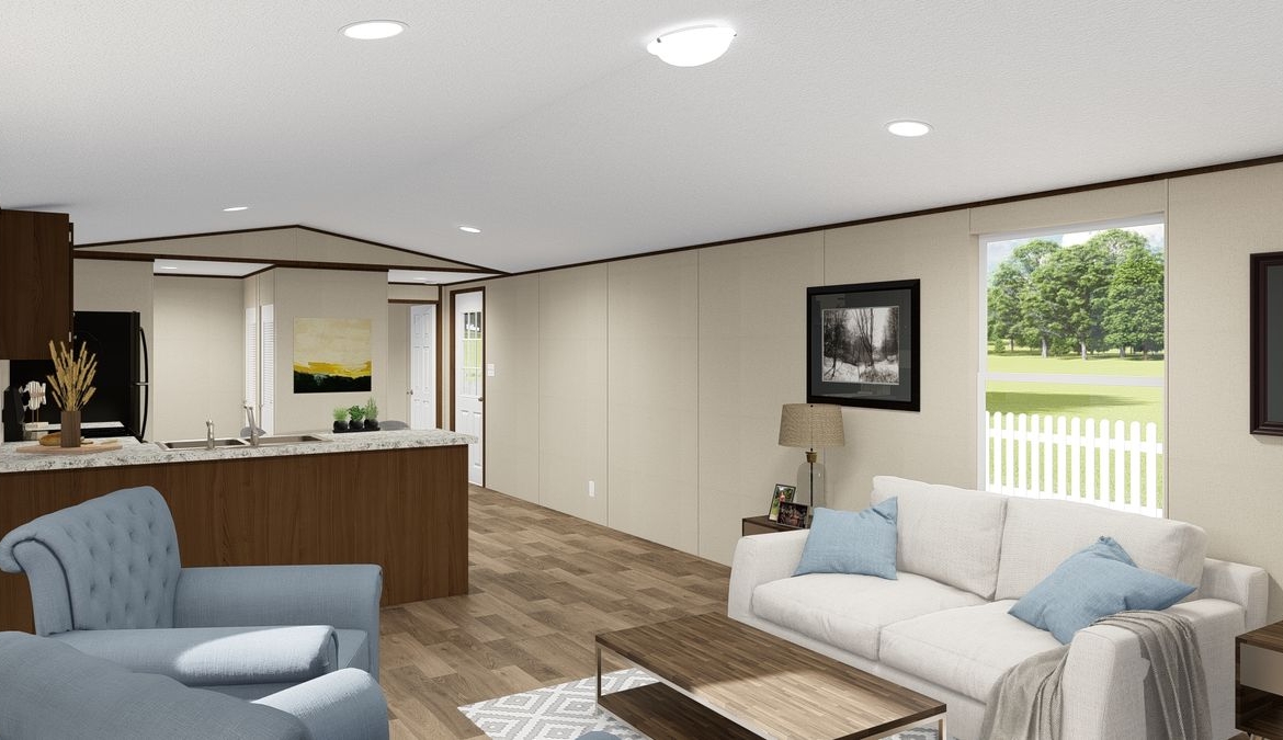 The Glory is a spacious manufactured home featuring 3 bedrooms, 2 bathrooms, and 1,038 sq. ft. of living space. It’s designed for modern living with an open floor plan that combines comfort and functionality. The layout includes a well-equipped kitchen, a cozy living area, and a master suite with an en-suite bathroom. Perfect for families, this home offers quality construction and affordability.