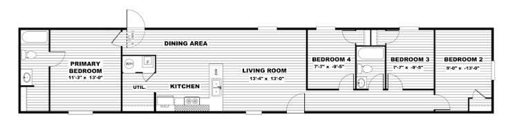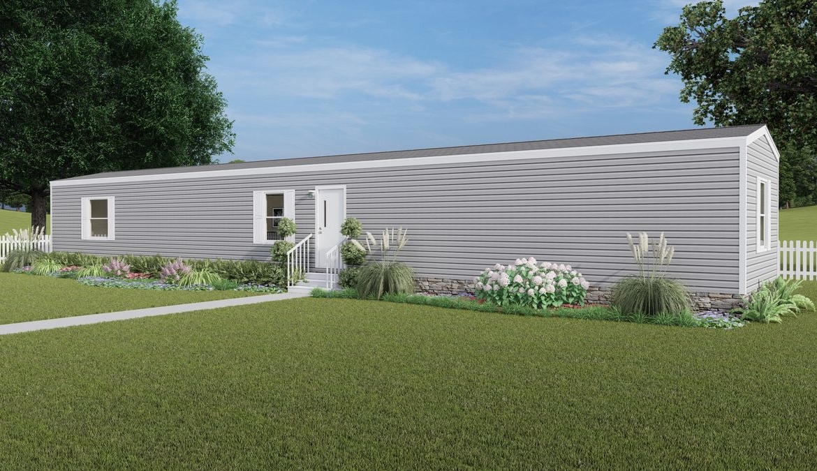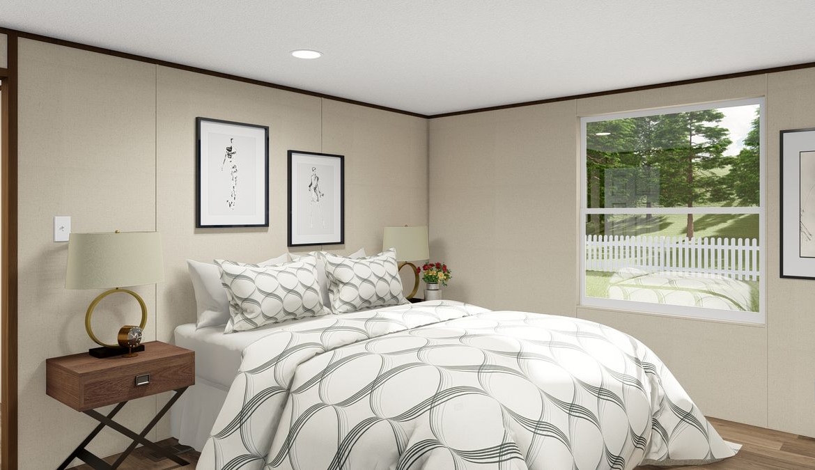 The Grand is a spacious manufactured home featuring four bedrooms and two bathrooms, spread across 1,038 square feet. This home is designed to offer both comfort and functionality, with an open living area that seamlessly connects to the kitchen, making it ideal for family gatherings. The master suite provides a private retreat, while the additional bedrooms are perfect for family or guests. This model is a great option for those seeking affordable yet stylish housing.