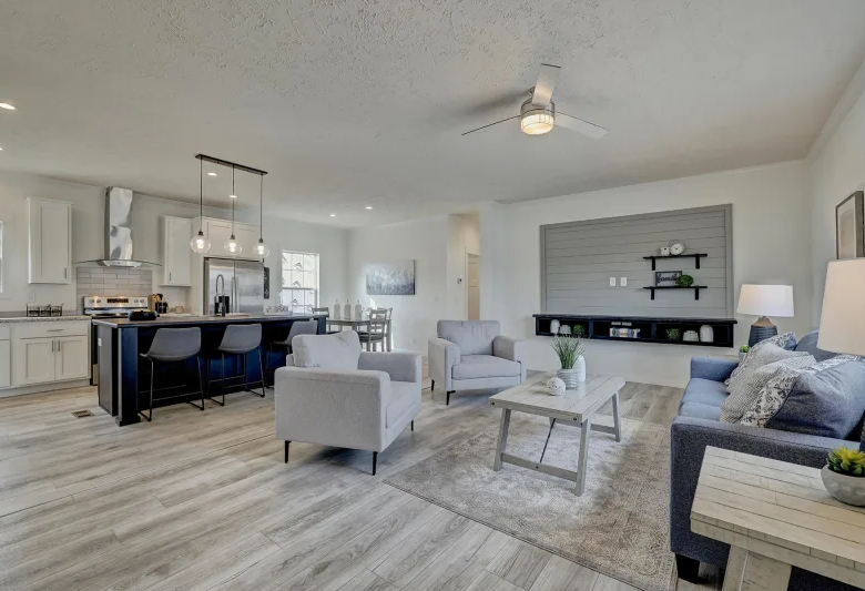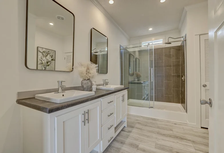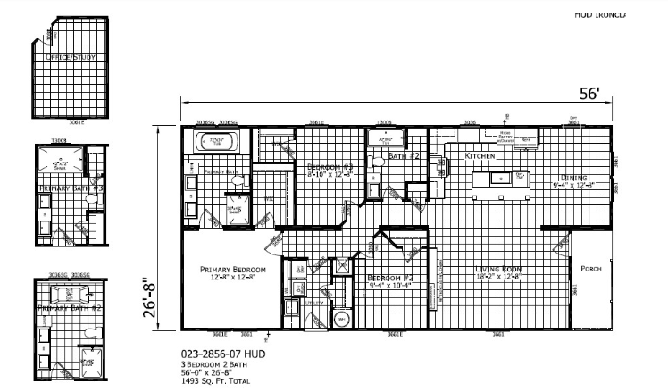 The Ironclad 2856-07 by Champion Homes, a 3-bedroom, 2-bathroom manufactured home designed with modern living in mind. Spanning 1,493 square feet, this multi-section home features customizable options, including a luxurious primary bath with a freestanding tub, an office/study, and a dining area with a sliding glass door. Built to HUD code, this home combines style, comfort, and affordability. Perfect for those seeking energy efficiency and versatile design in a manufactured home.