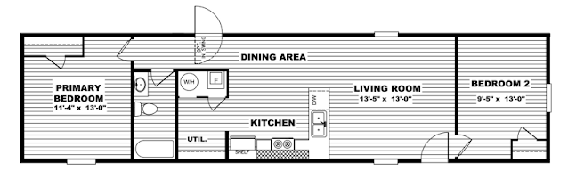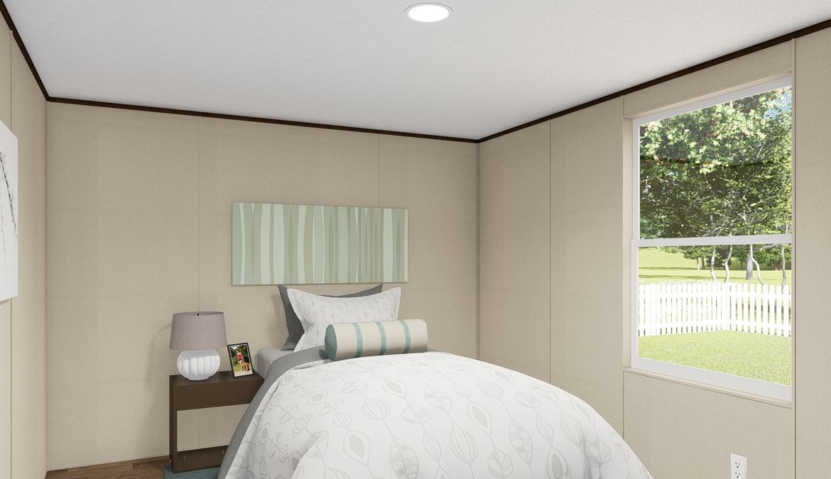 The Bliss is a modern and efficient manufactured home featuring 2 bedrooms, 1 bathroom, and 765 sq. ft. of living space.