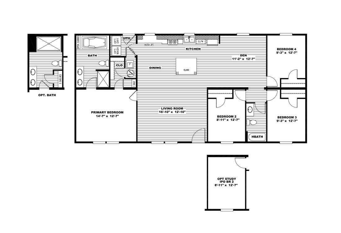 Discover the perfect blend of style and functionality with the Ultra Pro 4BR2856 manufactured home from Oxford. This spacious model features a smart, open floor plan with four bedrooms and two bathrooms, ideal for comfortable living. The modern kitchen comes equipped with high-quality appliances, and the expansive living area offers a welcoming space for family and guests. The master suite includes a private en-suite bathroom for added convenience. Crafted with top-notch materials for energy efficiency and durability, the Ultra Pro 4BR2856 is an excellent choice for affordable, high-quality manufactured housing.